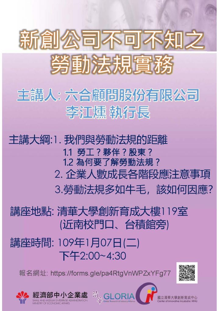 本講座主要目的讓新創公司了解以勞基法為首的勞動法規基本概念,